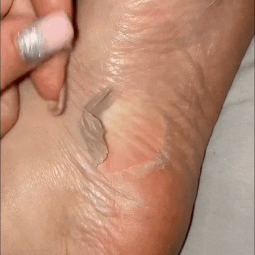 Een paar dagen na het aanbrengen begint het magische moment: de oude huid laat vanzelf los. De dode, verdikte laag — vaak ook de bron van een minder frisse geur — komt vanzelf los van je voeten. Dit is het natuurlijke peelingproces: volledig pijnloos, zonder trekken of schaven. Je huid doet het werk zelf. Onder deze laag komt je zachte, vernieuwde huid tevoorschijn — glad, fris en zichtbaar verzorgd.